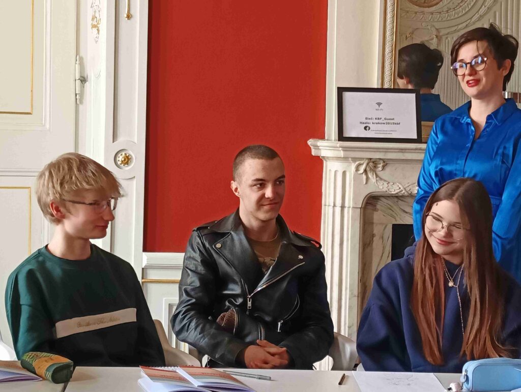 20 marca br. uczennice i uczniowie klasy 1e (artystyczno-architektonicznej) uczestniczyli w zajęciach literackich zorganizowanych w związku ze Światowym Dniem Poezji, obchodzonym 21 marca. Wydarzenie odbyło się w Pałacu Potockich w ramach programu „Kraków – Miasto Literatury UNESCO”, pod marką Festiwalu Miłosza.