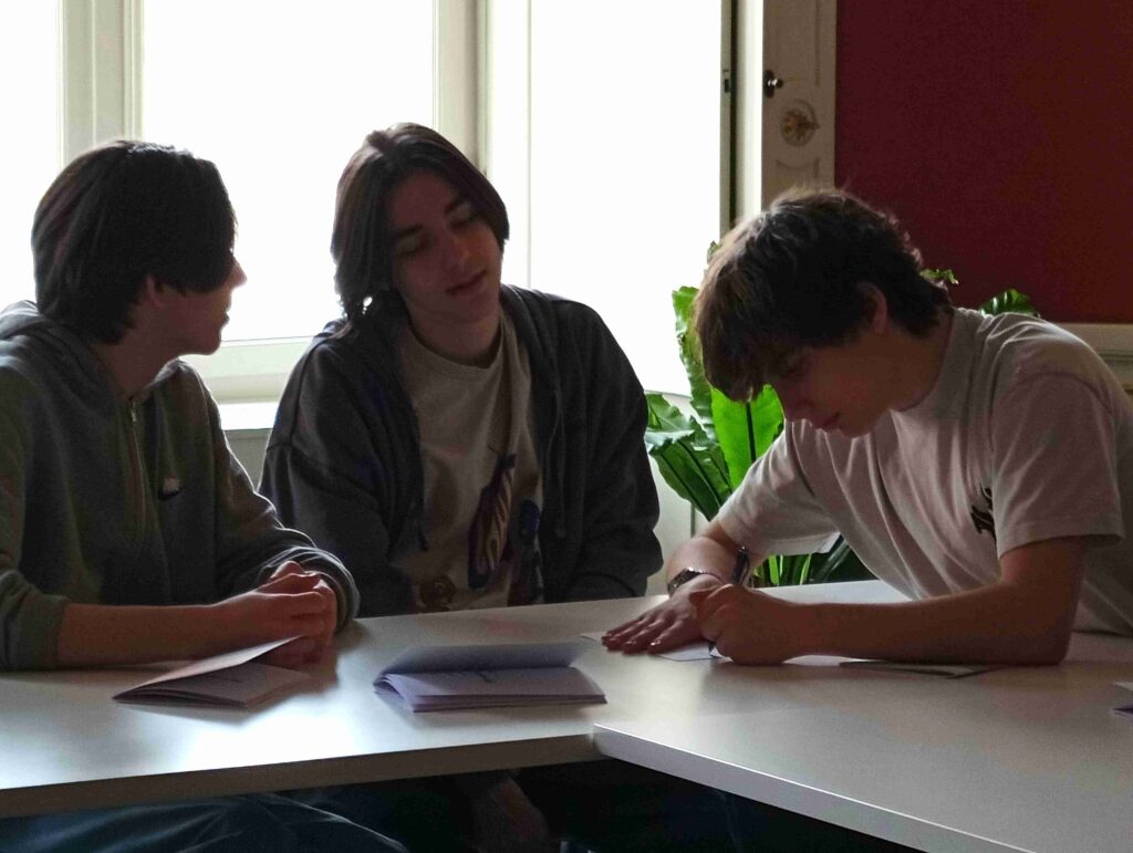 W trakcie zajęć młodzież omawiała przeczytany tekst „Stawianie fundamentów”, analizowała cechy charakterystyczne prozy poetyckiej oraz trudności związane z jej interpretacją. Uczniowie pracowali nad fragmentami utworów, starając się swobodnie i samodzielnie wyrażać swoje refleksje. Interpretacji towarzyszyło również zadanie polegające na graficznym przedstawieniu wybranych środków stylistycznych.