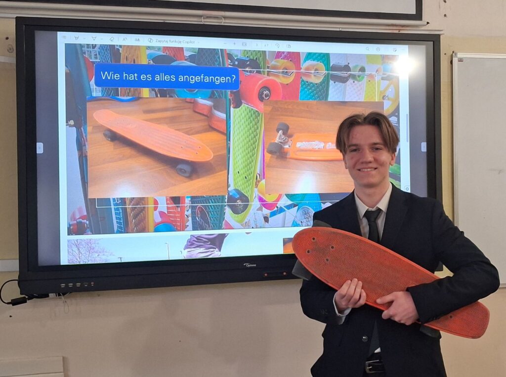 Uczniowie grup DSD oraz grup dwugodzinnych z klas 1-4 przygotowali na egzamin ustny prezentacje na temat niemieckiej motoryzacji, ulubionych sportów, książek, muzyki, języków obcych, miejsc podróży oraz programów Erasmus+ realizowanych w naszej szkole.